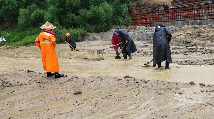 清理樹木??????? 205國道多處山體滑坡道路堵塞,樹木、電線桿被洪水沖倒卡在路中央,項(xiàng)目部先后調(diào)派挖機(jī)、裝載機(jī)等大型機(jī)械設(shè)備數(shù)臺(tái)、10多名員工前往各個(gè)交通要道、村道進(jìn)行搶險(xiǎn)救援,對多處塌方道路進(jìn)行清理,疏通清理堵塞道。經(jīng)過6小時(shí)奮戰(zhàn),國道恢復(fù)正常運(yùn)行,人員安全撤離危險(xiǎn)區(qū)域。