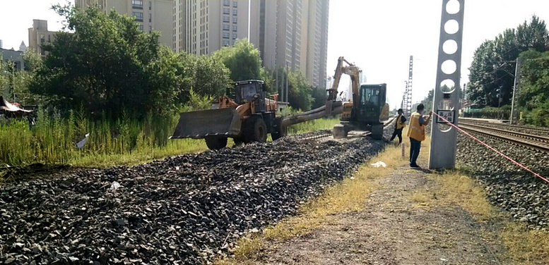 承擔(dān)施工任務(wù)的中鐵二十三局二公司,按照中國鐵路哈爾濱局集團(tuán)有限公司濱洲鐵路電氣化改造工程建設(shè)指揮部的要求,周密部署、搶前抓早,第一時(shí)間組建施工隊(duì)伍,調(diào)集機(jī)械設(shè)備,并迅速進(jìn)場施工。筆者在現(xiàn)場看到,炎炎烈日下堅(jiān)守一線施工的20多名職工,在拆卸螺栓、撥移鋼軌、回收路料,力爭3天內(nèi)拆除600余米的馬通專用線,為車庫等房建工程施工創(chuàng)造條件。
