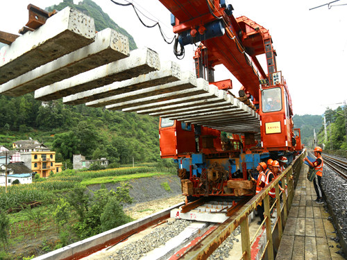 自7月進入暑期以來,承建該條鐵路建設的中鐵一局鋪架項目部面對施工地段跨江跨河,地理位置偏遠,道路崎嶇不平,工期節(jié)點步步緊逼等系列不利因素,第一時間配足配齊施工人員設備,細化優(yōu)化施工方案,嚴格安全質量卡控,在渝東南地區(qū)夏季高溫多雨的常規(guī)天氣下堅持鋪軌架橋作業(yè),并且管內大機養(yǎng)道、線路穩(wěn)固、長軌焊接放散等工序環(huán)環(huán)相扣,最終形成了線路邊人工鋪軌、邊上砟整道、邊整體成型的良好作業(yè)局面。