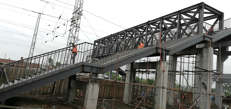 據(jù)悉,濱綏線K137+636人行天橋位于尚志市明里道口處,跨越濱綏既有鐵路。該橋全長35.3米、橋面凈寬3.9米、高4米、建筑面積383.63平方米。主體為鋼結(jié)構(gòu),上部采用型鋼平臺支撐,樓承板鋼筋混凝土樓面。下部結(jié)構(gòu)柱式墩臺,橋下凈空7.90米,采用獨立基礎(chǔ),鋼筋混凝土柱,橋面鋪設(shè)梅花鋼板。