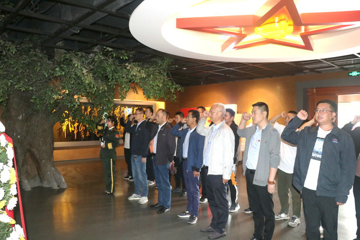 向黨旗宣誓 此次活動是中鐵二十一局三公司武九項(xiàng)目部結(jié)合開展“黨風(fēng)廉政宣傳教育”而組織的紅色教育活動,旨在通過實(shí)地教育,讓黨員同志們能深切體會到革命先烈對真理的執(zhí)著與追求,從而在工作、生活中規(guī)范自己的行為,塑造清正廉潔的企業(yè)風(fēng)氣。