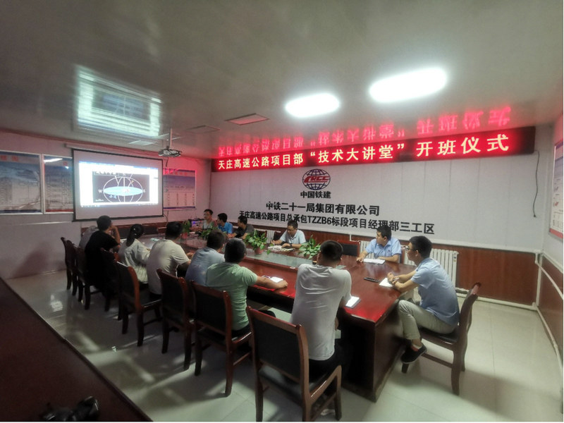 為提高每一位參建人員的綜合業(yè)務水平,更好的打造精品工程,7月17日,中鐵二十一局四公司天莊高速公路項目部組織工程技術、物資、計劃及安質人員開展“技術大講堂”開班儀式。