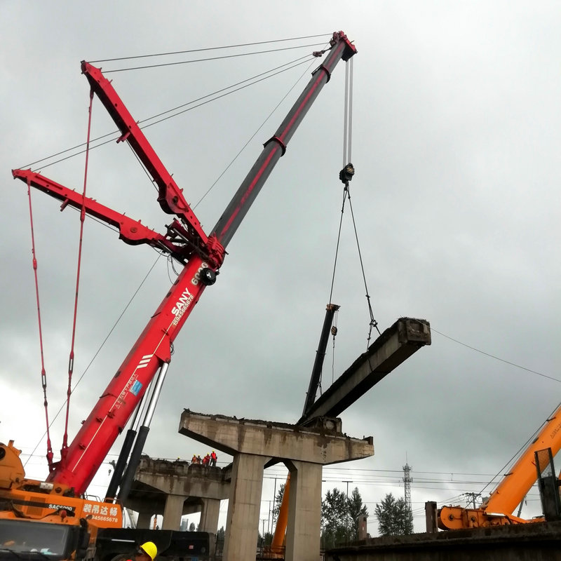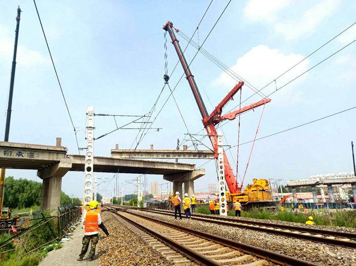 承擔(dān)施工任務(wù)的中鐵二十三局集團(tuán)二公司搶前抓早、精心組織,施工前結(jié)合現(xiàn)場(chǎng)實(shí)際,制定了嚴(yán)密的施工組織方案和應(yīng)急預(yù)案,對(duì)參戰(zhàn)人員進(jìn)行了既有線施工安全知識(shí)培訓(xùn)。組織專門力量對(duì)跨線孔箱梁提前切割分離,掃除影響施工障礙。同時(shí)調(diào)集一臺(tái)500噸和兩臺(tái)110噸重型液壓吊車,提前進(jìn)行荷載試驗(yàn),確保了準(zhǔn)備工作的萬無一失。在兩天的二級(jí)線路封鎖施工中,克服了高空跨線作業(yè)安全風(fēng)險(xiǎn)疊加、電力接觸網(wǎng)林立、陰雨連綿等不利因素,嚴(yán)格標(biāo)準(zhǔn)化作業(yè)不走樣,把住箱梁吊裝、線路防護(hù)、吊車運(yùn)行關(guān),均安全正點(diǎn)開通線路,順利完成了7片箱梁的拆除任務(wù),為下步橋梁施工贏得了寶貴時(shí)間。