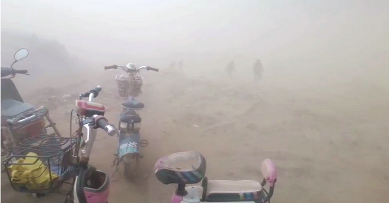 “只要哪天的風(fēng)力是4-5級(jí),空曠的施工現(xiàn)場就會(huì)沙土飛揚(yáng)、遮天蔽日,沙子經(jīng)常吹進(jìn)眼睛,奇癢難忍”。項(xiàng)目工程部負(fù)責(zé)人孔祥哲一邊翻閱手機(jī)照片,一邊介紹。工程初期,由于覆蓋綠植的河槽表土被清理,剩余地表沙土裸露,加之晉州地區(qū)春季多風(fēng),沙塵極易出現(xiàn)。起沙塵時(shí),能見區(qū)域超不過三米,嚴(yán)重影響河槽內(nèi)人員施工和機(jī)械作業(yè),存在很大安全隱患,這時(shí)普通口罩根本無法起到保護(hù)措施,長期以往將損害作業(yè)人員健康。
