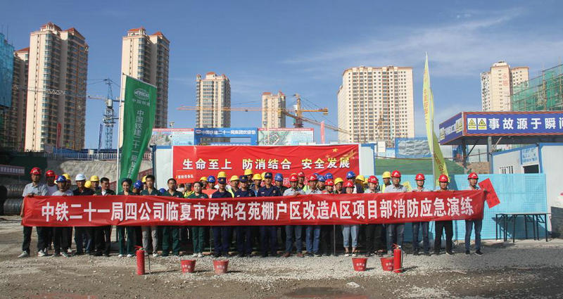 7月28日,中鐵二十一局四公司臨夏市伊和名苑棚戶區(qū)改造A區(qū)項目部組織開展消防應急演練活動,項目部全體干部職工及參建勞務隊代表參加演練。