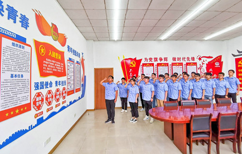 在活動(dòng)尾聲,經(jīng)理部班子和各分部書記向新入職大學(xué)生贈(zèng)送了入職禮物,并為新入職員工佩戴團(tuán)徽,重新溫習(xí)了入團(tuán)誓詞。