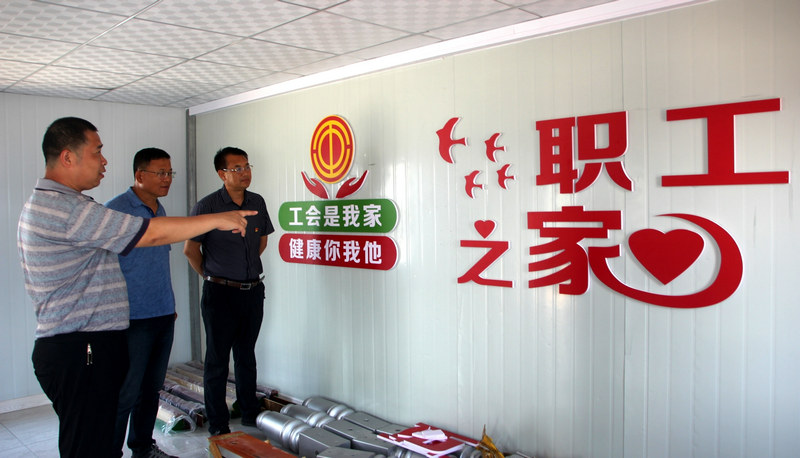 朱建國一行頂著30余度的高溫,深入施工現(xiàn)場和生活區(qū)邊走邊看,詳細了解工程進展、防暑降溫、疫情防控,黨群活動開展、工地職工生活等情況,慰問堅守一線的全體參戰(zhàn)職工。感謝大家克服資金短缺、施工條件受限、不確定因素疊加等困難,不等不靠,頂烈日、戰(zhàn)酷暑,主動作為抓落實,保證了施工生產(chǎn)和工地建設的有序推進。黨群工作扎實有力,特別是項目黨政領導高度重視,專門設立了黨群活動室、職工之家活動室,場室布置的新穎大方、簡潔莊重,融知識性、實用性為一體,有較強的借鑒意義。“三個培養(yǎng)”、基礎建設、文體活動骨干的發(fā)現(xiàn)培養(yǎng)等特色活動推動有力,工地職工生活服務全面展開,各項工作取得的成績值得肯定。