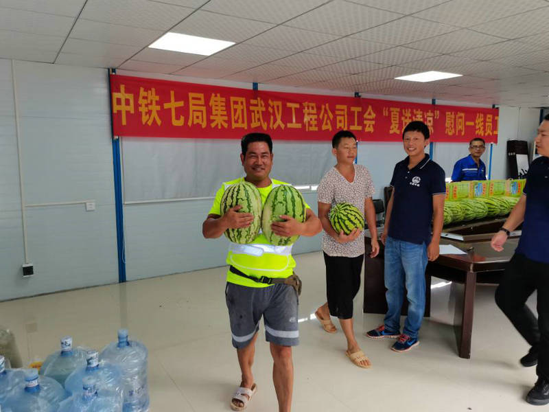 “喂,宋班長(zhǎng),我們公司現(xiàn)在正開展“夏送清涼”活動(dòng),請(qǐng)你明天上午9點(diǎn)鐘到項(xiàng)目部來(lái)領(lǐng)取你們工班的防暑降溫物資”,“好咧,謝謝公司和項(xiàng)目部的關(guān)心”,7月30日,中鐵七局武漢公司陽(yáng)朔新城項(xiàng)目部安全總監(jiān)戴維依次給各施工班組打電話提前通知。
