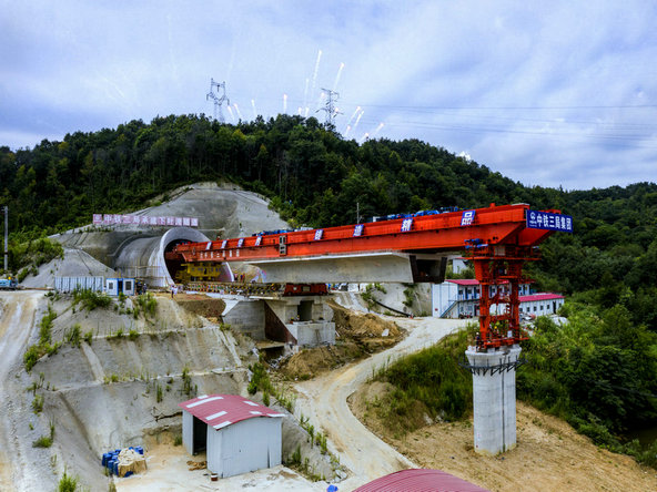 JQSS900B型可變式過隧架橋機(jī)在隧道口位置架橋畫面