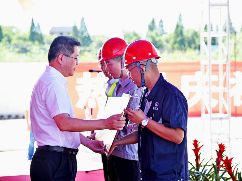 當日,出席參加軌通活動的人員有:浙江省交通集團軌道交通管理部副總經理陳明,浙江杭海城際鐵路有限公司黨委書記、董事長董衛(wèi)國和總經理言建標、中鐵三局集團華東區(qū)域常務副指揮長張弘鵬、中鐵三局集團線橋工程有限公司副總經理歐陽飛飛等相關單位的負責人?;顒又?,言建標代表業(yè)主單位致辭,表揚了杭海城際鐵路全體參建將士的辛勤付出與努力,對中鐵三局線橋公司始終保持昂揚向上并按期完成施工任務的積極態(tài)度給與充分肯定,望在今后施工中勇創(chuàng)新的佳績。張弘鵬代表中鐵三局施工單位做了講話,杭海城際鐵路如期實現(xiàn)全線軌通離不開杭海公司的正確領導和出色的管理,更離不開各單位對中鐵三局線橋公司的大力支持,我們將繼續(xù)發(fā)揚“勇于跨越 追求卓越”的中鐵精神,樹三局形象品牌。隨后,杭海城鐵公司董事長董衛(wèi)國為施工單位頒發(fā)了全線軌通獎牌及獎杯。