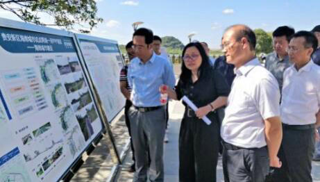 在中交四公局實(shí)施的詩月廣場,吳舜澤一行聽取了兩湖一河PPP項(xiàng)目總體規(guī)劃、運(yùn)作模式、設(shè)計(jì)理念、工作進(jìn)展等相關(guān)情況的介紹,并與陪同人員就河湖生態(tài)治理、綠色金融應(yīng)用等具體問題進(jìn)行了交流。