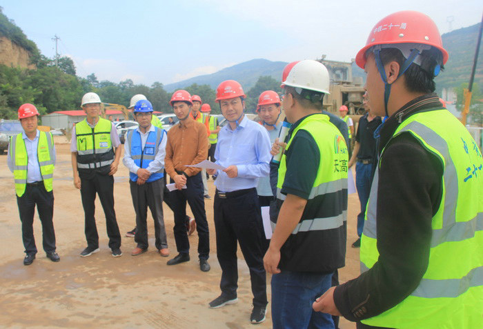 圖為天水市委政策研究室副主任王煒對項目建設(shè)提出具體要求 督查組一行對天莊高速TZZB6標(biāo)項目施工建設(shè)成效表示很滿意,并要求項目要在確保施工安全的前提下,緊盯節(jié)點計劃,搶抓當(dāng)前黃金施工時段,科學(xué)合理調(diào)度,確保施工進度計劃的順利完成。并要求相關(guān)部門要進一步完善協(xié)調(diào)推進機制,明確項目推進時間節(jié)點,及時跟進督促工程建設(shè)進度,加強對原材料供應(yīng)、工程質(zhì)量的監(jiān)管,高起點、高標(biāo)準(zhǔn)、高效率推進項目建設(shè)。
