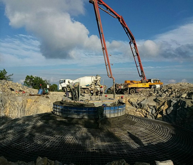 圖為湖北風電項目南1區(qū)風機基礎(chǔ)澆筑施工