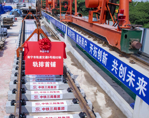 南寧軌道交通5號線是南寧市首條采用全自動駛系統(tǒng)的線路,為南寧交通網(wǎng)中聯(lián)系城市西南-東北方向的骨干線,對于緩解市中心擁堵,引導(dǎo)城市空間結(jié)構(gòu)優(yōu)化調(diào)整有重要意義,線路連接江南組團、城西組團、城北組團、昆侖大道南、北組團。南起壯錦大道與國凱大道路口東側(cè)的那洪站,止于金橋客運站站。這是中鐵三局線橋公司在南寧繼3、4號線后參建的第三條地鐵線路,承擔正線部分鋪軌任務(wù)及相關(guān)工程。
