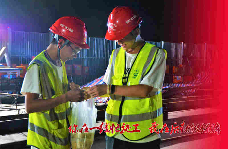 號角嘹亮,奮戰(zhàn)正酣。每個崗位都在為完成施工生產(chǎn)目標在奮斗。近期,中鐵廣州局市政環(huán)保公司西咸項目部施工現(xiàn)場工作如火如荼開展,為表達對項目夜間堅守崗位值班員工的關(guān)心關(guān)懷,項目綜合辦公室人員為項目施工生產(chǎn)一線職工準備了飲料、面包、炒飯等加班餐,親自送到一線職工手中,對他們的辛勤工作表示慰問。大家聚在一起,開心的吃著面包、喝著飲料、感受項目部對他們的關(guān)心。