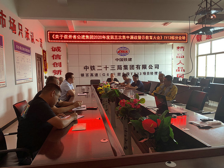 9月11日,銀百高速(G69)甜永段TY13項(xiàng)目經(jīng)理部于會(huì)議室設(shè)立甘肅省公建集團(tuán)2020年度第三次集中廉政警示教育大會(huì)視頻分會(huì)場(chǎng),集中進(jìn)行警示教育學(xué)習(xí)。