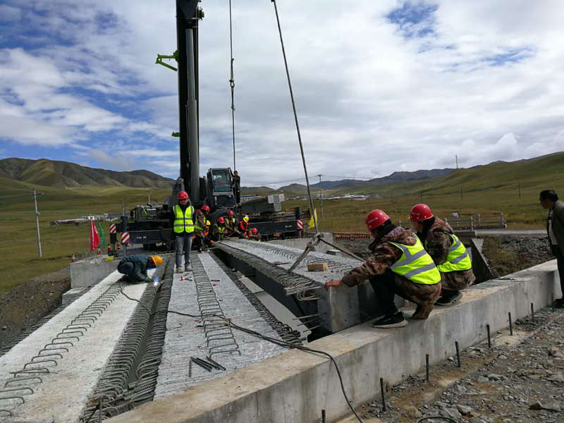 9月19日上午11時38分,伴隨著施工現(xiàn)場禮炮齊鳴,一片13米長,17噸重的T梁緩緩平移至橋臺上,青海省道308線夏同公路首片T梁架設(shè)成功。中鐵十一局二公司夏同二標項目部全體人員以及夏同公路總監(jiān)辦人員共計50余人共同見證這一時刻。