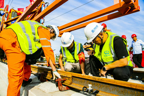 京沈高鐵北京至承德段鋪軌始于9月5日,結(jié)束于9月24日,歷時20天,比國鐵集團確定的節(jié)點整整提前1天,累計鋪軌213km,創(chuàng)造了高鐵鋪軌史上的奇跡,贏得了業(yè)主的贊譽,為后續(xù)工作的順利進行奠定了堅實的基礎(chǔ)。在整個鋪軌施工過程中,中鐵三局集團全體參建人員繼承和發(fā)揚“勇于跨越 追求卓越”的企業(yè)精神,克服各種困難,爭分奪秒,把耽誤的時間搶回來。項目部組建京沈高鐵北京段工作組,工作組下設(shè)八個保障組,各有分工,配合現(xiàn)場施工;各級領(lǐng)導(dǎo)高度重視京沈高鐵鋪軌進度,多次來到施工現(xiàn)場對進度、安全、質(zhì)量方面進行督導(dǎo);項目部數(shù)次模擬推演施工組織的可行性,預(yù)測各種不利因素,排查各種危險源;組建行車調(diào)度智控中心,實現(xiàn)了國內(nèi)首家自建網(wǎng)絡(luò)基站解決隧道通訊問題的技術(shù)創(chuàng)新,解決京沈高鐵北京段站線長、坡度大、隧道多等施工特點,達到了京沈高鐵十余家建設(shè)單位聯(lián)絡(luò)員進駐智控調(diào)度指揮中心合署辦公的成效,該智控中心得到了國鐵集團黨組成員、副總經(jīng)理王同軍高度贊揚;采用一次鋪設(shè)跨區(qū)間無縫線路,為保證長鋼軌鋪設(shè)工期,有砟軌道換軌與無砟軌道鋪軌同時進行,全力推進鋪軌進度;增加人員、機械等配備,針對京沈高鐵北京段工期緊,運距長,協(xié)同工序復(fù)雜等困難,中鐵三局集團公司線橋工程公司舉全公司之力,緊急抽調(diào)管理干部近300人,配齊11個作業(yè)面近2000人的協(xié)作隊伍、24小時兩班倒作業(yè);采用五套17列T11長鋼軌運輸車、11臺牽引機車、10臺軌道車、2臺機養(yǎng)設(shè)備、2臺鋪軌機、4臺焊軌機、2臺套收軌車、10組卸砟K車,以每天鋪軌12公里的速度推進,確保實現(xiàn)了軌通目標。