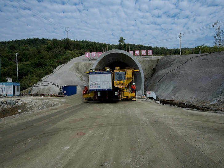 運(yùn)梁設(shè)備駛出王上塆大長(zhǎng)隧道