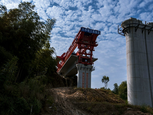 黃黃鐵路黃岡方向王上塆大長(zhǎng)隧道出口鋪爾塆雙線特大橋首孔架設(shè)成功