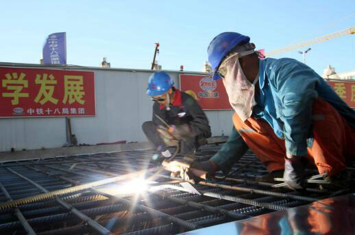 4、中鐵十八局集團(tuán)承建的濱海新區(qū)軌道交通Z4線土建第二標(biāo)段南開(kāi)中學(xué)站至航安道站區(qū)間道岔連續(xù)梁鋼筋綁扎現(xiàn)場(chǎng)(孫鵬 攝)