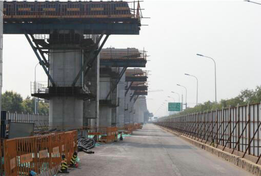 2、中鐵十八局集團(tuán)承建的濱海新區(qū)軌道交通Z4線南開(kāi)中學(xué)站至航安道站區(qū)間已完成架設(shè)的節(jié)段梁(孫鵬 攝)