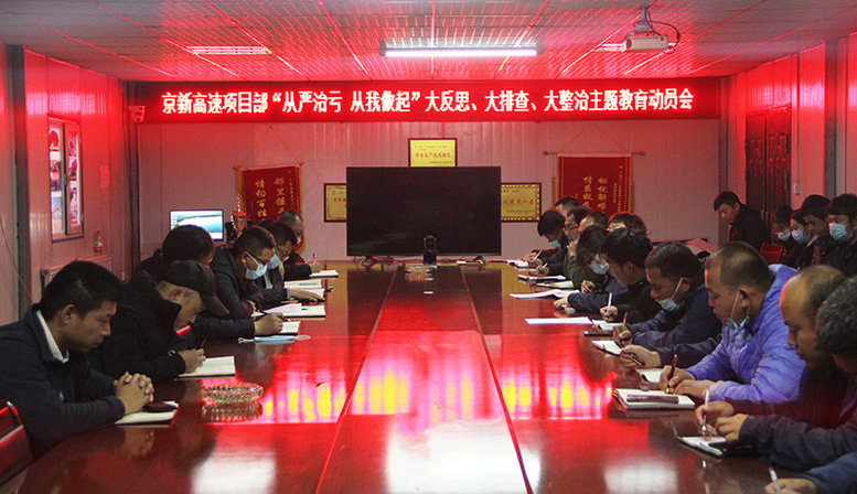 圖為京新高速項目部召開“從嚴治虧、從我做起”主題教育動員會