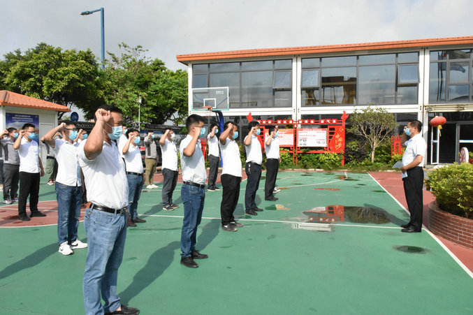 縱封安(右1)在組織職工舉行勞動競賽與安全生產(chǎn)宣誓活動