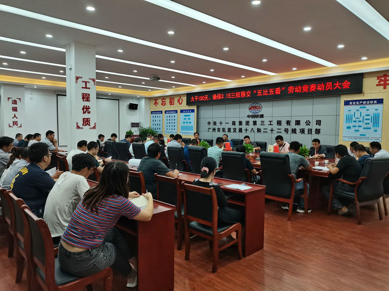 繼華南建設(shè)廣州地鐵五分部(中鐵十一局管段)勞動(dòng)競(jìng)賽活動(dòng)啟動(dòng)之后,應(yīng)施工生產(chǎn)形勢(shì)和項(xiàng)目管理需要,10月11日晚,五分部四工區(qū)召開(kāi)大干150天,確保3·15三權(quán)移交“五比五看”勞動(dòng)競(jìng)賽動(dòng)員大會(huì),標(biāo)志著項(xiàng)目各項(xiàng)工作全面展開(kāi),進(jìn)入持續(xù)攻堅(jiān)階段。