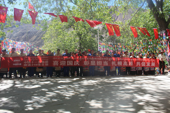 西藏芒康訊:為慶祝中華人民共和國成立71周年,昌都市解放70周年,為彰顯國企擔(dān)當(dāng)、融洽企地關(guān)系、助推企業(yè)藏區(qū)發(fā)展,2020年10月10日,中鐵十一局集團(tuán)國道318項目部與西藏交通運(yùn)輸廳建管處(駐村工作隊)在項目所在地果熱村廣場與村民共同開展“喜迎國慶、彰顯擔(dān)當(dāng)、扎根高原、共促發(fā)展”系列文化活動。