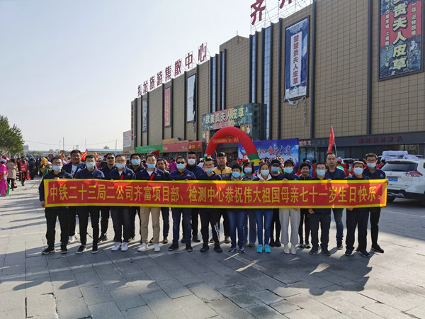 不忘初心跟黨走,砥礪奮進(jìn)新時代,值此新中國成立71周年又逢中秋佳節(jié)之際,中鐵二十三局集團第二工程有限公司齊富項目部、檢測中心開展迎雙節(jié)系列活動,以多種形式迎國慶、賀中秋,歌頌新中國成立以來的偉大成就,培養(yǎng)職工愛國情感,營造濃厚的節(jié)日文化氛圍,增強鐵建人的歷史責(zé)任感和使命感。