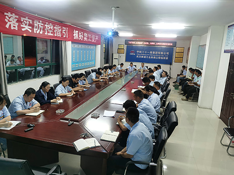 圖為武漢江北項(xiàng)目部召開(kāi)“從嚴(yán)治虧 、從我做起”主題教育動(dòng)員會(huì)現(xiàn)場(chǎng)