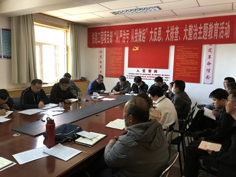 圖為鐵路工程項(xiàng)目部召開“從嚴(yán)治虧、從我做起”主題教育動(dòng)員會(huì)現(xiàn)場