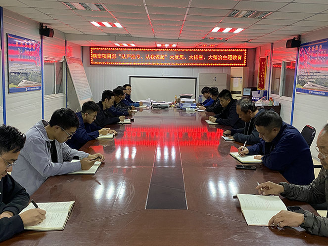 圖為精奎項(xiàng)目部召開“從嚴(yán)治虧、從我做起”主題教育反思會(huì)現(xiàn)場(chǎng)