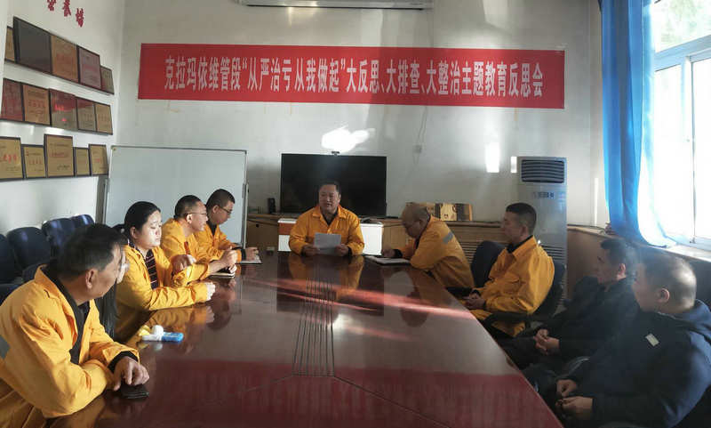 圖為克拉瑪依維管段開展“從嚴(yán)治虧、從我做起”主題教育反思會現(xiàn)場