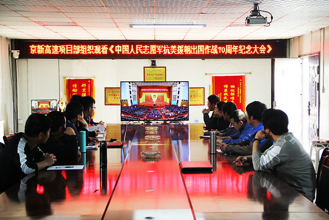10月23日,中國人民志愿軍抗美援朝出國作戰(zhàn)70周年紀(jì)念大會在北京人民大會堂隆重舉行,京新高速項(xiàng)目部組織項(xiàng)目職工觀看了大會直播。