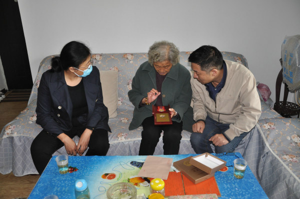 慰問活動中,公司社管后勤管理中心黨政負(fù)責(zé)人相繼來到老戰(zhàn)士楊文娟、霍躍榮、梁卓基、蘭國斌、馬振倫、陳洪乾等6人家中,送去了“中國人民志愿軍抗美援朝出國作戰(zhàn)70周年”紀(jì)念章和慰問金、慰問物資,向其轉(zhuǎn)達(dá)了集團(tuán)公司和武漢公司領(lǐng)導(dǎo)的關(guān)心,逐一詢問了老人們目前的身體狀況和家庭情況。老戰(zhàn)士楊文娟當(dāng)年作為文藝兵參加了抗美援朝戰(zhàn)爭,摸著紀(jì)念章楊老眼中泛起淚光,回憶起曾經(jīng)的戰(zhàn)斗國王,向大家講起了當(dāng)年的往事,還拿出了當(dāng)年的老照片給慰問人員看。
