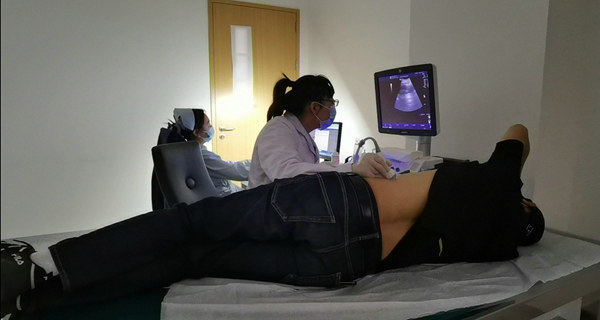 醫(yī)師正在為職工進(jìn)行彩超檢查