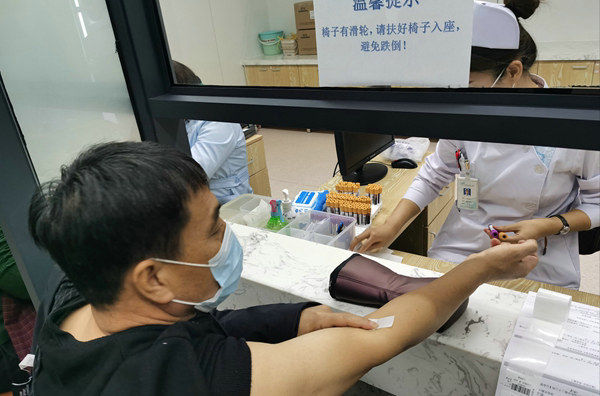 醫(yī)師為職工進(jìn)行采血