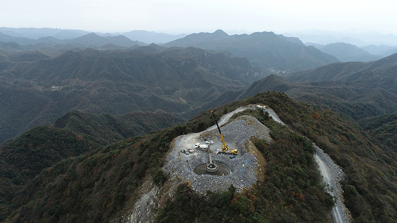 圖為風(fēng)機(jī)基礎(chǔ)澆筑鳥瞰圖中節(jié)能湖北五峰牛莊120MW風(fēng)電場場址區(qū)域分為南、北兩個(gè)片區(qū),北區(qū)安裝37臺風(fēng)力發(fā)電機(jī)組,南區(qū)安裝23臺風(fēng)力發(fā)電機(jī)組,共計(jì)60臺。該項(xiàng)目位于五峰縣牛莊鄉(xiāng)的東部與南部山區(qū)內(nèi),本風(fēng)電場屬于高中山地貌,最高海拔2300米,地質(zhì)災(zāi)害頻發(fā),夏季梅雨季節(jié)頻繁,冬季冰凍期長的高寒地區(qū),且地形險(xiǎn)要,道路崎嶇,工期緊、任務(wù)重、技術(shù)要求高、施工難度大,項(xiàng)目部面對重重困難,迎難而上,優(yōu)化施工方案,加大攻關(guān)力度,破解了三大施工難題,加強(qiáng)溝通協(xié)調(diào),組織施工會戰(zhàn),加快施工進(jìn)度,疫情防控和施工生產(chǎn)兩手抓、兩不誤,確保了全標(biāo)段60個(gè)風(fēng)機(jī)基礎(chǔ)澆筑施工的按期完成。