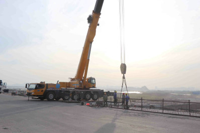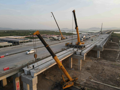 10月27日下午5時(shí),中鐵十一局集團(tuán)二公司珠海洪鶴大橋項(xiàng)目新增收費(fèi)站最后一片箱梁在架橋機(jī)的吊裝下順利完成架設(shè)任務(wù),這為項(xiàng)目11月下旬達(dá)成通車(chē)目標(biāo)又增一份強(qiáng)心劑。