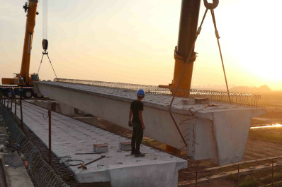 圖三、箱梁架設(shè)過(guò)程(攝影:李若冰)