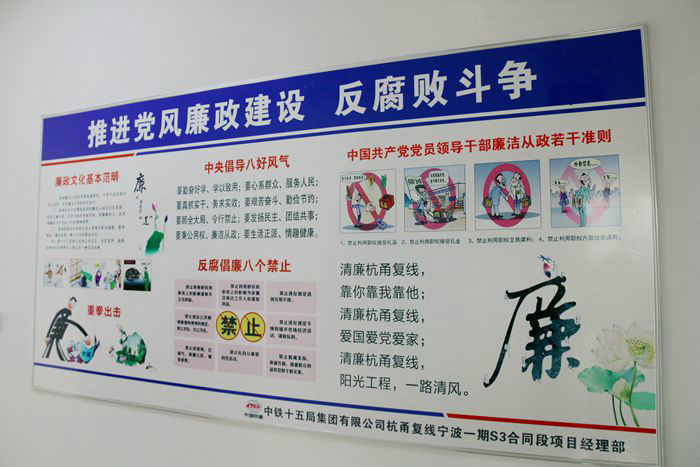 這個(gè)項(xiàng)目規(guī)模大、誘惑多,對(duì)每個(gè)管理人員都是一次廉潔自律考驗(yàn)。去年9月份開工以來,項(xiàng)目部班子成員、各部門負(fù)責(zé)人層層簽訂廉潔從業(yè)承諾書,并張貼在黨務(wù)公開欄進(jìn)行公示,接收廣大職工監(jiān)督。黨支部要求每個(gè)重要崗位人員要言行一致,表里如一,堅(jiān)守法律底線,不碰紅線。同時(shí),黨政主管分別找班子副職、各部門負(fù)責(zé)人進(jìn)行廉潔談話,要求正確用好手中權(quán)力,不得以權(quán)謀私,與分包隊(duì)、材料供應(yīng)商保持距離,想要人不知除非己莫為,沒有不透風(fēng)的墻,要算好人生經(jīng)濟(jì)賬、政治賬、家庭賬,不要因小失大,毀掉前程,害了家庭。在這基礎(chǔ)上,項(xiàng)目黨支部書記、副書記分別找分包單位負(fù)責(zé)人、材料供應(yīng)商談話,奉勸他們遵紀(jì)守法,不允許向項(xiàng)目部重要崗位人員行賄,一旦發(fā)現(xiàn)線索,交由上級(jí)紀(jì)檢部門一查到底,誰(shuí)行賄,與誰(shuí)終止合同。