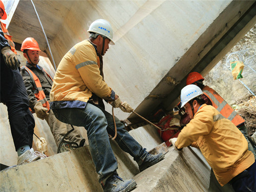 期間,為確保移梁施工安全有序進行,項目部統(tǒng)籌規(guī)劃,科學部署,第一時間指派分管領導深入現(xiàn)場開展調(diào)查,隨后根據(jù)調(diào)查結果研究制定移梁作業(yè)方案。移梁過程中,工人們嚴格按照前期技術交底及安全規(guī)定,尋尋有序地開展線路拆除,蓋板支座切割,滑道安放及移梁線路恢復等作業(yè)環(huán)節(jié)。并且在搶抓施工進度的同時,緊抓安全質(zhì)量不放松,嚴格落實施工有方案,技術有交底,工序有檢查,安全有卡控的工作方針,最終在20余名人員7天的不懈努力下,全線移梁施工完美告捷,為該條鐵路石子壩至中嘴段的按期開通運營提供了堅實保障。