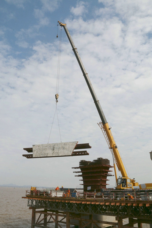 濱海高架、濱海樞紐鋼棧橋的安全架設(shè),鋼護(hù)筒的精確定位和涉水進(jìn)入地下,使鉆孔樁機(jī)打孔成功率達(dá)到100%,規(guī)避了安全風(fēng)險(xiǎn),使橋墩施工安然無恙。