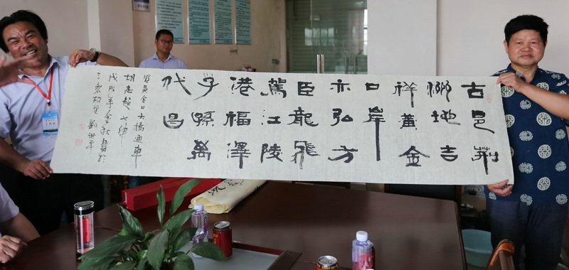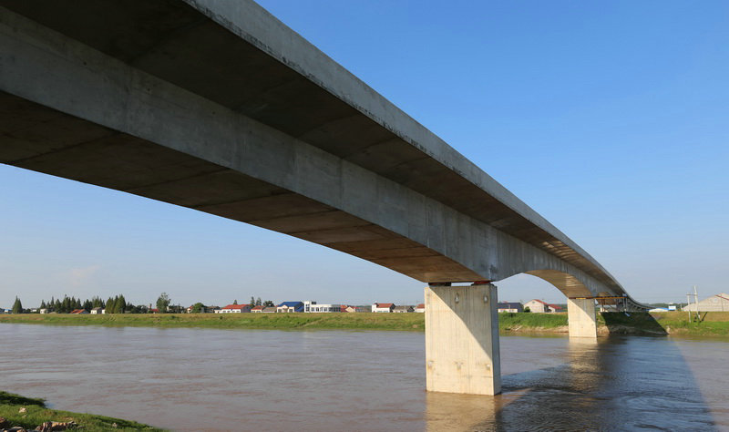 鐵道兵老同志、公安縣文聯(lián)主席劉世平書法賀大橋通車。2018年5月下旬,在竣工日期臨近之際,項(xiàng)目部員工在經(jīng)理陳偉、副書記張國杰、總工儲(chǔ)定海、副經(jīng)理陳建寶的帶領(lǐng)下,加班加點(diǎn)奮力突擊兩個(gè)月,于7月28日達(dá)到驗(yàn)收標(biāo)準(zhǔn),為四座大橋按期通車奠定了實(shí)堅(jiān)實(shí)的基礎(chǔ)。公安四橋項(xiàng)目部在荊州地區(qū)展示了良好的企業(yè)形象,受到荊州市、公安縣委、縣政府、交通局領(lǐng)導(dǎo)的高度評(píng)價(jià)。公安縣交通運(yùn)輸局局長(zhǎng)孫家軍在致辭中,熱切希望中鐵二十一局三公司繼續(xù)參與公安縣的交通工程建設(shè),為公安人民再作新的更大的貢獻(xiàn)。