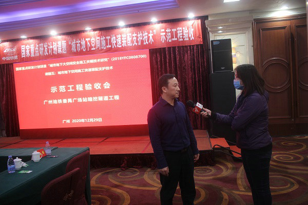 12月29日上午,國(guó)家重點(diǎn)研發(fā)計(jì)劃項(xiàng)目“城市地下大空間安全施工關(guān)鍵技術(shù)研究”示范工程驗(yàn)收會(huì)在廣東省廣州市召開(kāi)。在項(xiàng)目負(fù)責(zé)人中國(guó)鐵建總工程師雷升祥的指導(dǎo)下,由中鐵十一局承擔(dān),鐵建重工、北京交通大學(xué)、中鐵第五勘察設(shè)計(jì)院等單位參與的國(guó)家重點(diǎn)研發(fā)計(jì)劃課題“城市淺埋暗挖快速裝配支護(hù)技術(shù)”示范工程——廣州地鐵番禺廣場(chǎng)站暗挖隧道工程順利通過(guò)驗(yàn)收。