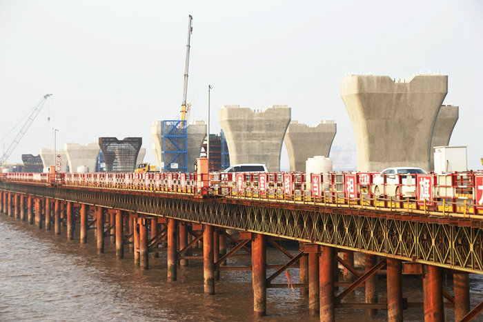 同時,在鋼棧橋、鋼護筒、承臺、墩身施工中,該項目部在緣由人員、設(shè)備基礎(chǔ)上,及時增加施工隊伍和鉆孔機、履帶吊、汽車起重機,以充足的人力和設(shè)備加快施工進度,三季度完成產(chǎn)值2.3億多,一舉扭轉(zhuǎn)被動局面,從全線各單位排名靠后變?yōu)槊星懊?,四季度月月產(chǎn)值破億,領(lǐng)跑全線。