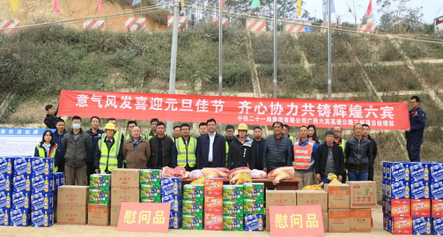 本網(wǎng)廣西南寧 1月2日訊 (通訊員 蔡曉菲 龍凡)2021年元月1日,新年的第一天,在項目經(jīng)理王永奇的帶領(lǐng)下,中鐵二十一局集團六賓三標項目部領(lǐng)導(dǎo)班子成員,帶著禮品到項目部所屬各個工點慰問一線建設(shè)者。