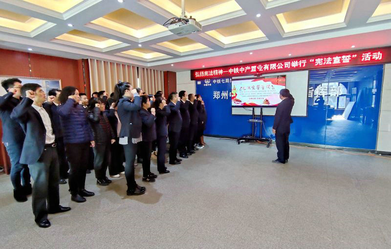 “我宣誓:忠于中華人民共和國憲法,維護憲法權(quán)威……”,12月4日上午,在第七個國家憲法日當(dāng)天,公司法律合規(guī)部組織鄭州地區(qū)全體職工在鄭州中央商務(wù)區(qū)301會議室舉行莊嚴(yán)的憲法宣誓儀式。儀式上,公司總會計師兼工會主席熊傳榮領(lǐng)誓,全體職工整齊排列,右手舉拳,跟誦誓詞。誓詞誦讀完畢后,全體宣誓人高聲報出自己的姓名。